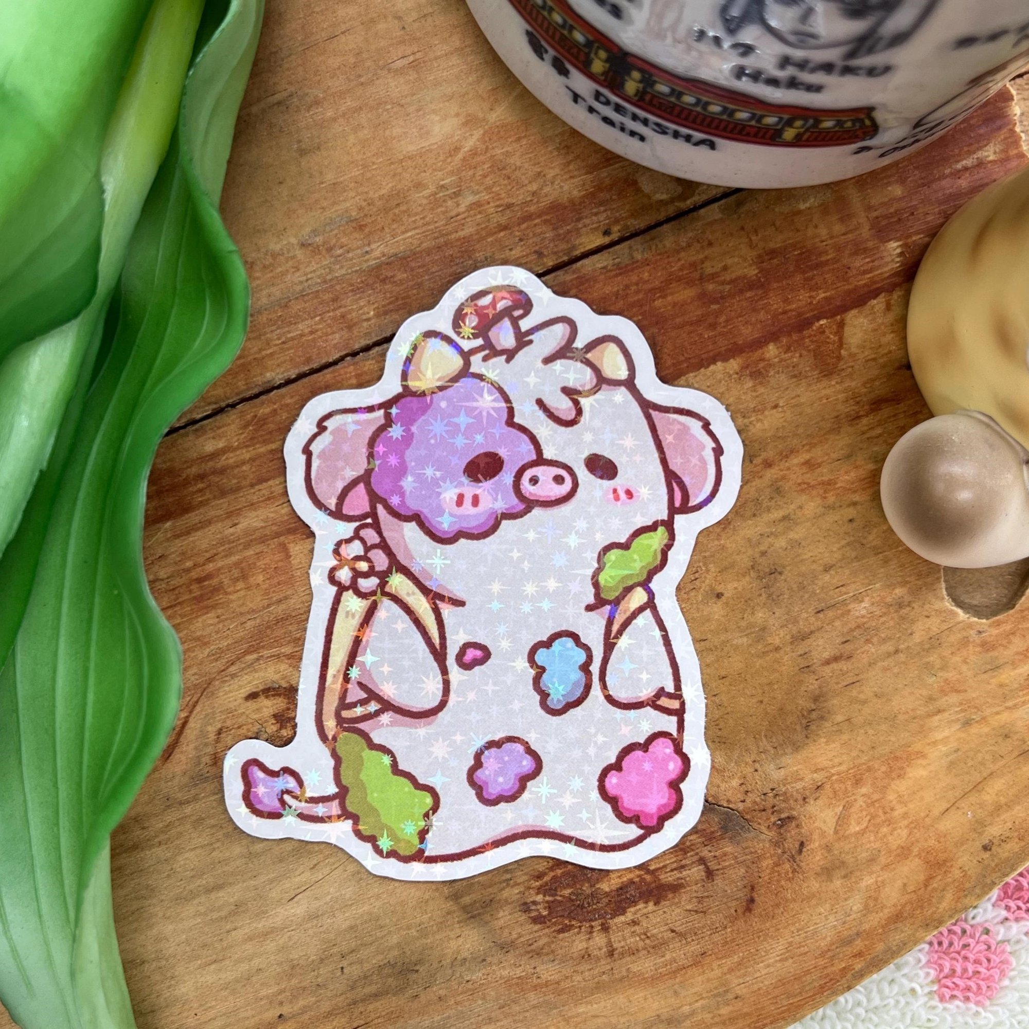 Cottagecore Cow | Star Glitter Sticker